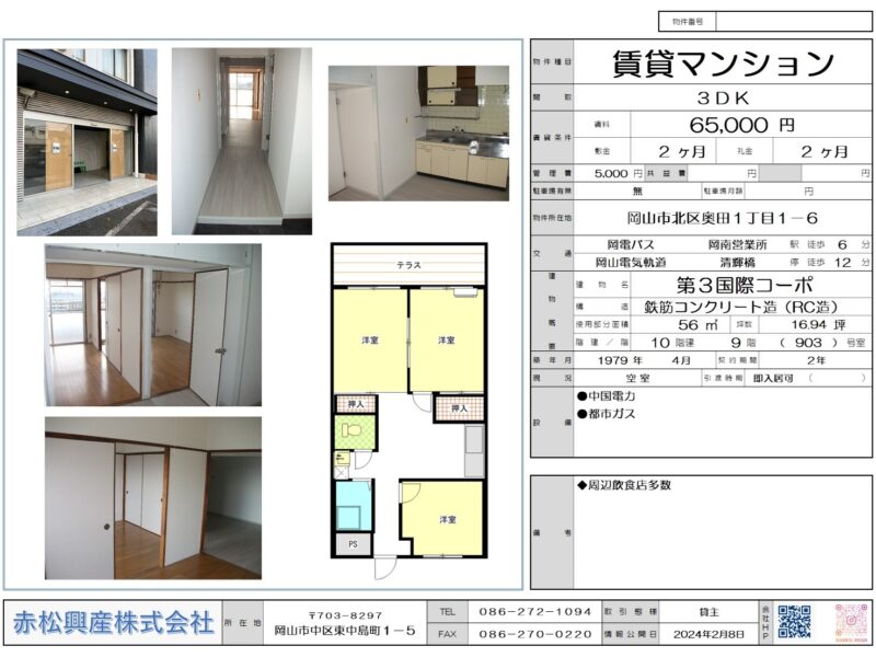赤松興産の「ファミリー向け物件」「マンション・アパート」「第3国際コーポ 903号|賃貸物件」です