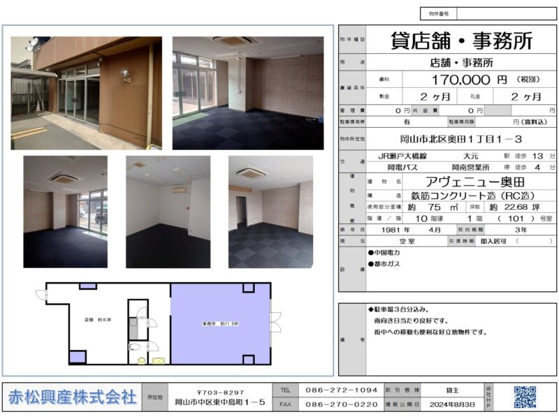 - 岡山市北区奥田1丁目1-3