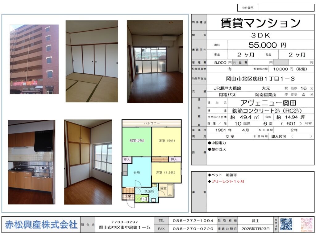 ※入居時1ヶ月フリーレントになりました♬ - 敷110,000円