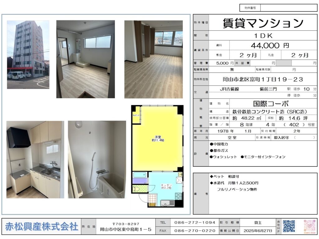 赤松興産の「シングル物件」「マンション・アパート」「国際コーポ 402号|賃貸物件」です