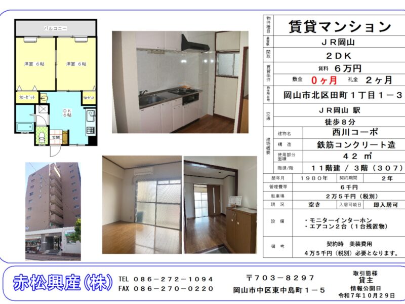 - 駅、表町からも徒歩圏内、西川緑道公園、公共施設が近くにあり、環境抜群な場所になります。イオン岡山にも近いです。生活するにはとても便利な場所です。