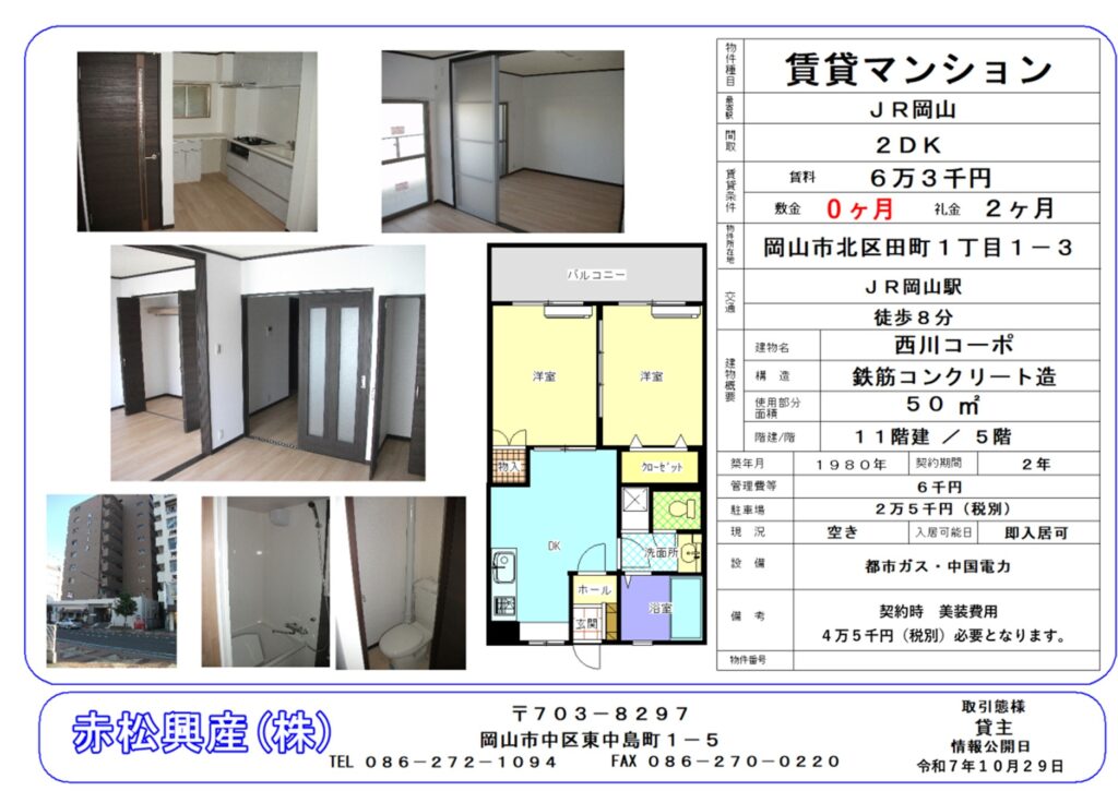 - 駅、表町からも徒歩圏内、西川緑道公園、公共施設が近くにあり、環境抜群な場所になります。イオン岡山にも近いです。生活するにはとても便利な場所です。