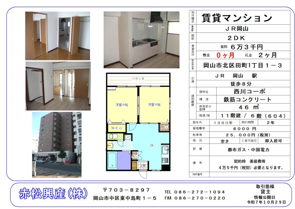 - 駅、表町からも徒歩圏内、西川緑道公園、公共施設が近くにあり、環境抜群な場所になります。イオン岡山にも近いです。生活するにはとても便利な場所です。