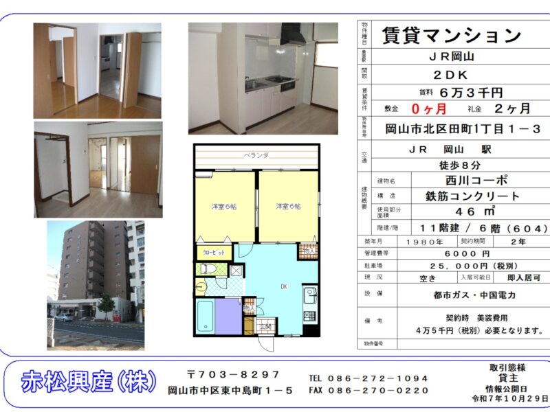 - 11階建の6階(604)